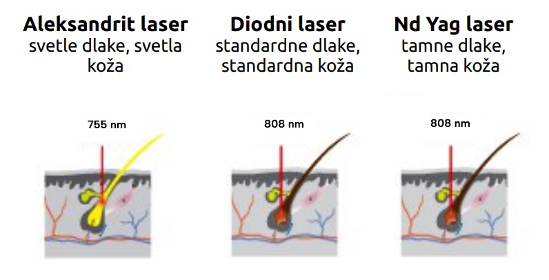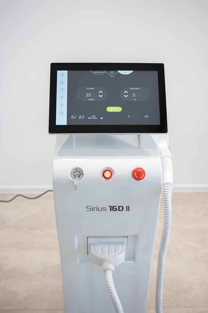 Diodna laser tehnologija za depilaciju bazira se na odabranoj dinamici svetlosti i toplote. Laser prolazi kroz površinu kože da bi stigao do korena folikula dlake. Laserski aparat SIRIUS 16D II koristi tri talasne dužine: 755 nm/ 808 nm/ 1064 nm. Talasna dužina 808nm je posebno efektivna na melanocite folikula dlake, bez oštećenja okolnog tkiva, jer se koherentno lasersko svetlo precizno usmerava. Stablo dlake i folikuli unutar melanina mogu apsorbovati laserski talas i pretvoren u toplotu, na taj način povećavajući temperaturu samih folikula. DIODNI LASER SIRIUS 16D II sa tri talasne dužine istovremeno omogućava efektivno uklanjanje standardnih (808nm- diodni), zatim veoma svetlih (755nm- aleksandrit laser) i veoma tamnih i debelih dlaka (1064nm Nd:yag).